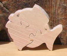 Puzzle composé de 3 pièces en hetre massif ,motif poisson,